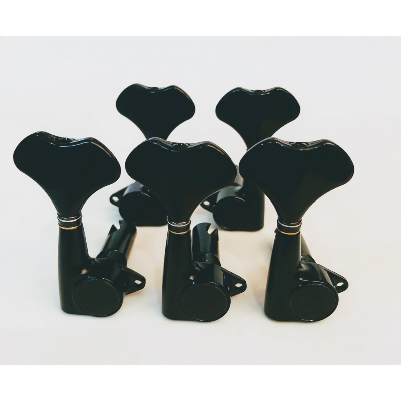 Maquinaria de acero forjado, con lubricación sellada. Esta versión cromada de clavijas compactas es exacta para cabezales de modalidad 3+2. Requiere hoyos de 9/16". Incluye tornillos.