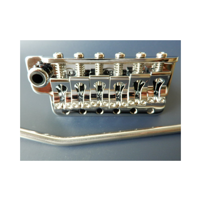 El trémolo 510T BS2 es un diseño de alta funcionalidad. Cuenta con una resistente placa de Acero Cromo-Molibdeno y seis anclas de pivote. Espacio entre cuerdas es 10.8mm. El sistema FTS de diseño propio de Gotoh evita que las cuerdas toquen las placa y mejora sustancialmente la capacidad de retener la entonación despúes de la acción del trémolo. El bloque es de acero y las monturas de bronce. lo cual le da gran resonancia y sustain. Una gran mejora funcional y de diseño, sin duda.