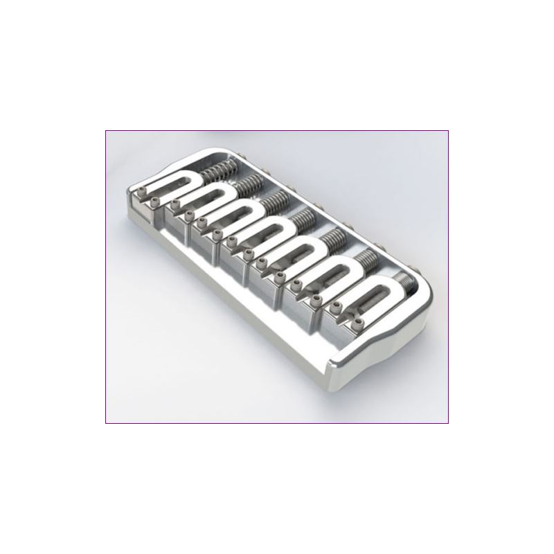Puente cromado para Guitarra de 7 cuerdas. Una combinación de desempeño, belleza y ergonomía. Pulido a mano, las monturas del puente son de acero para eliminar los tonos opacos y maximizar la vibración. Incluye tornillos de acero inoxidable anticorroción. Hecho en Estados Unidos por Hipshot.