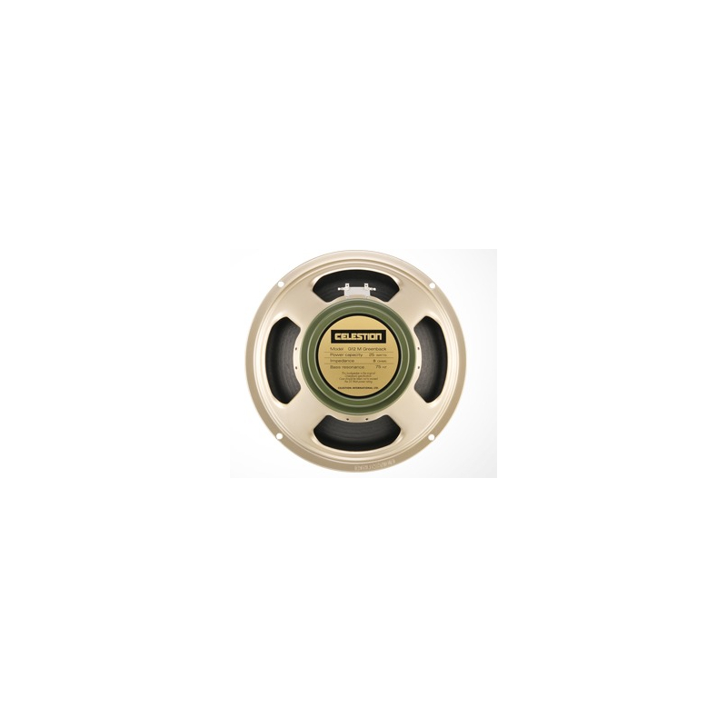La bocina Celestion Greenback de 12" 25W ha evolucionado pero mantiene su tono preferido por Angus Young desde el inicio de AC/DC. Esta bocina tiene una voz amplia en el rango medio que da un punch a los acorde. Con su rango bajo bien controlado puede ser usada en amplificadores de baja potencia. También en sets de bocinas en amps rockeros de alta potencia. Es ideal para amps modernos de alta ganancia por su empuje y definición.