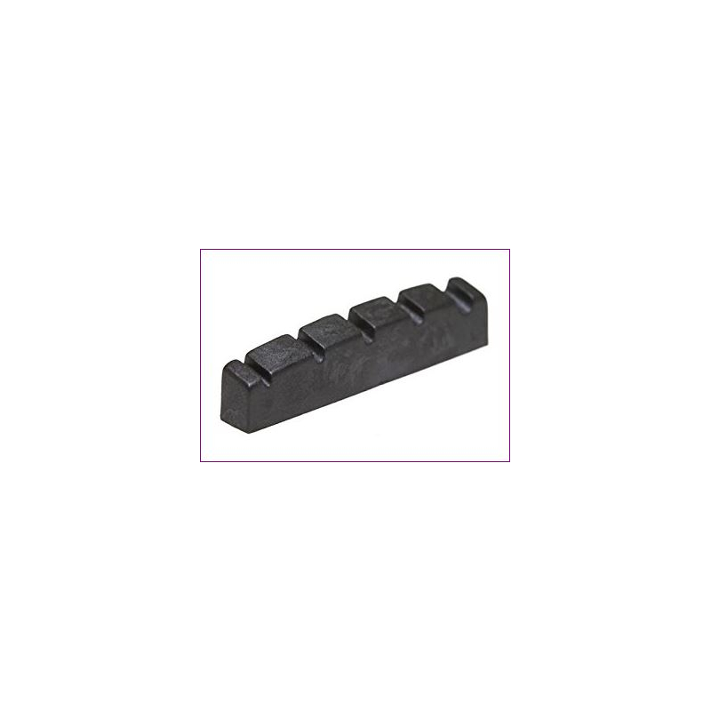 Cejilla pre ranurada, resultado de 30 años de diseño de ingeniería, impregnada con PTFE por lo que resulta 5 veces más deslizante que el grafito. Reduce la rotura de cuerdas, mejora la entonación y resalta los armónicos. Produce bajos grandes y abiertos, y agudos claros. Especialmente fabricada para BAJOS Ibanez de 5 cuerdas. Medidas: largo 44.8 x ancho 4.7 x alto 8.9 mm. Distancia total entre cuerdas 36.5 mm.