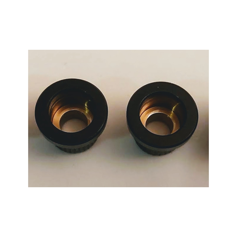 Set de 4 ferrules marca Gotoh, en color Negro, de diámetro 9.6mm y 10.5 mm de altura, estos dedales son usados para sujetar las cuerdas a través del cuerpo del Bajo.