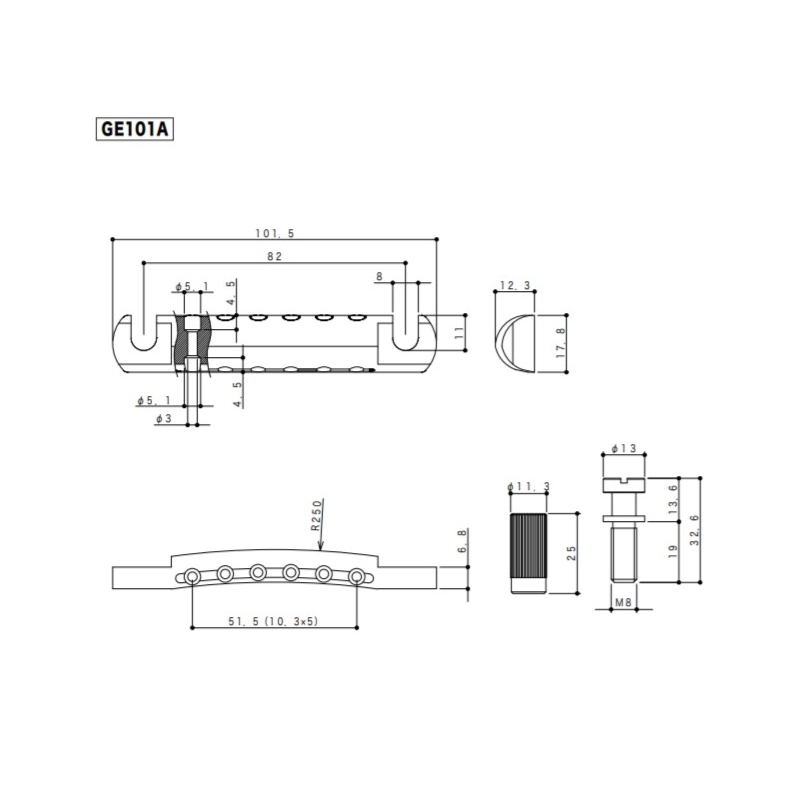 Tiracuerdas (Tailpiece) estilo Gibson manufacturado en Aluminio por Gotoh, sólido y muy durable. Su terminado es niquelado brillante fino. El tiracuerdas de aluminio es preferido por sus cualidad especiales de sustain y resonancia, mayor brillantez y trasparencia tonal. La distancia entrepostes es de 82 mm de mitad a mitad. Para guitarras Les paul y otras de su tipo. Incluye postes y sockets rosca métrica M8 para su instalación.