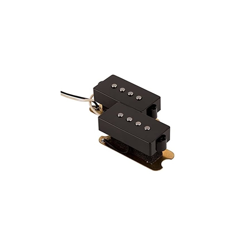 Set de 2 pastillas Fender para Bajo Precision Bass. Fabricadas con magnetos Alnico 5 y cable de bobina recubierto de esmalte. Esta pastilla desarrolla el punch de los Humbuckers y el boom característico del bajo eléctrico. Esta pastilla es OEM: Manufactura de Equipo Original American Vintage. Cada pastilla viene con blindaje de cobre y cubiertas negras. Resistencia DC: 10.5K, Inductancia 6.4 Henries.