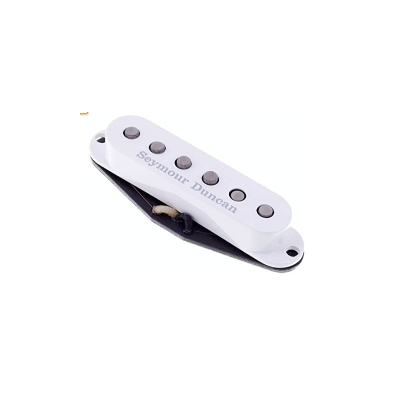 Pastilla Seymor Duncan Single Coil color blanco Strat Vintage de polos escalonados de polaridad inversa que elimina ruidos de interferencia. Para puente, medio o brazo. Alto rendimiento, excelentes armónicos.