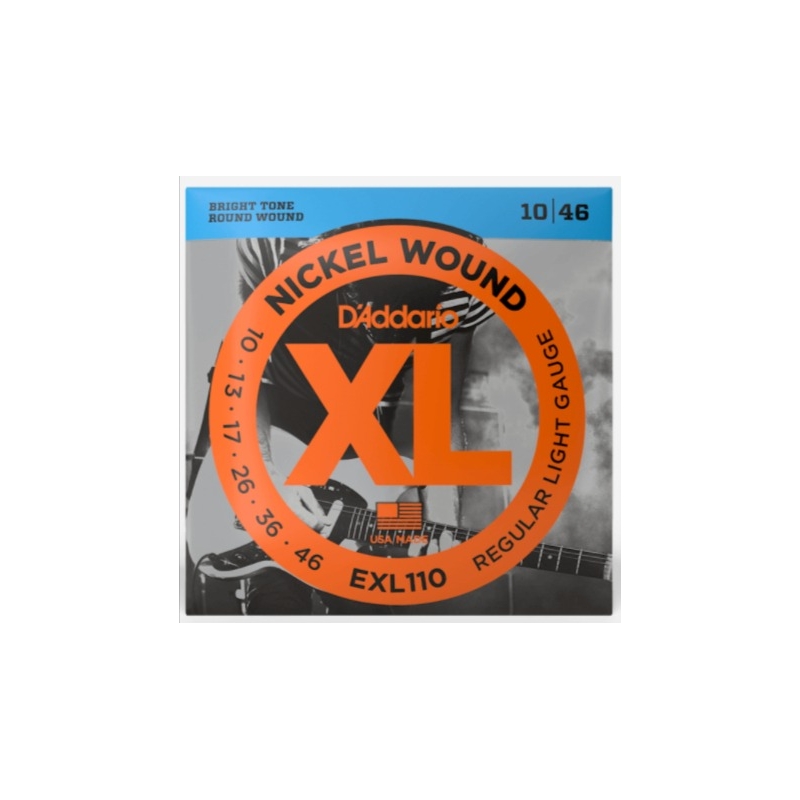 D´Addario EXL110 Regular Light Nickel Wound son cuerdas redonda con acero nickelado de tono brillante. Set de 6 cuerdas de calibres .010, .013,.017, .026,.036,.046. D´Addario es la marca de cuerdas de guitarra eléctrica situada entre las 10 mejores en 2021. Entonación precisa y larga vida..