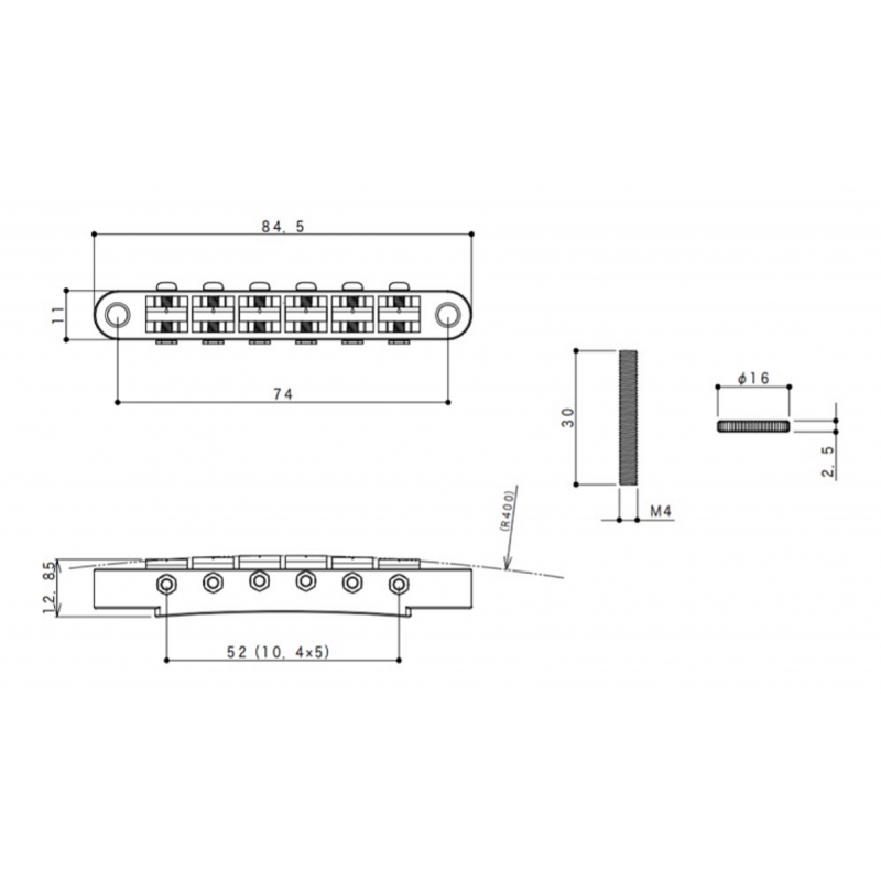 Puente ABR-1 Tune-o-matic cromado de estilo vintage de los años 60´s para guitarra eléctrica, manufacturado con la alta calidad tradicional de Gotoh  (Japón).  Las monturas están ranuradas y tiene tornillos para la entonación individual de cada cuerda. Se incluyen postes y rondanas para su instalación.