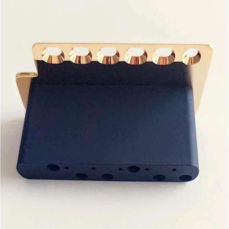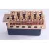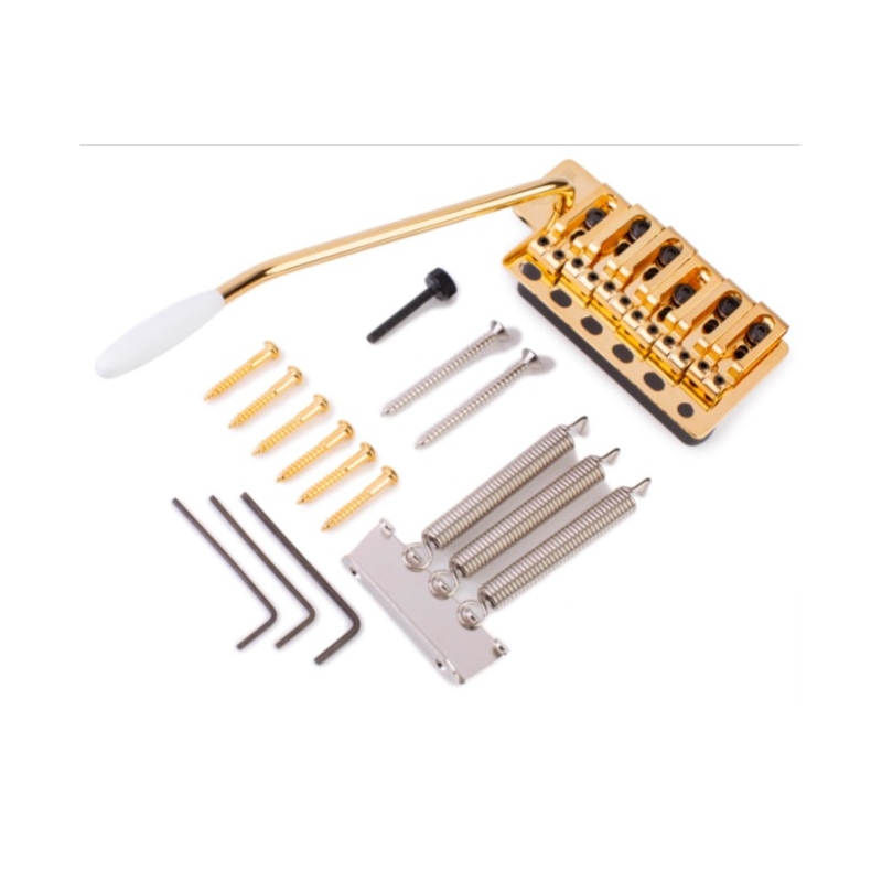 Modelos Premium VSVGN de Puente Wilkinson hecho en Japón por Gotoh en color dorado. De 6 pivotes (6 tornillos ). La placa base está hecha con acero endurecido. Las monturas corren por la placa con alineación precisa y gran estabilidad. La distancia entre 2 cuerdas y entre tornillos es de 11.2mm. Ver la gráfica anexa para las medidas del set.