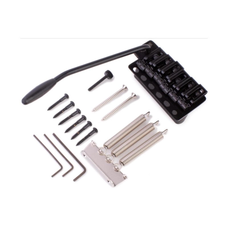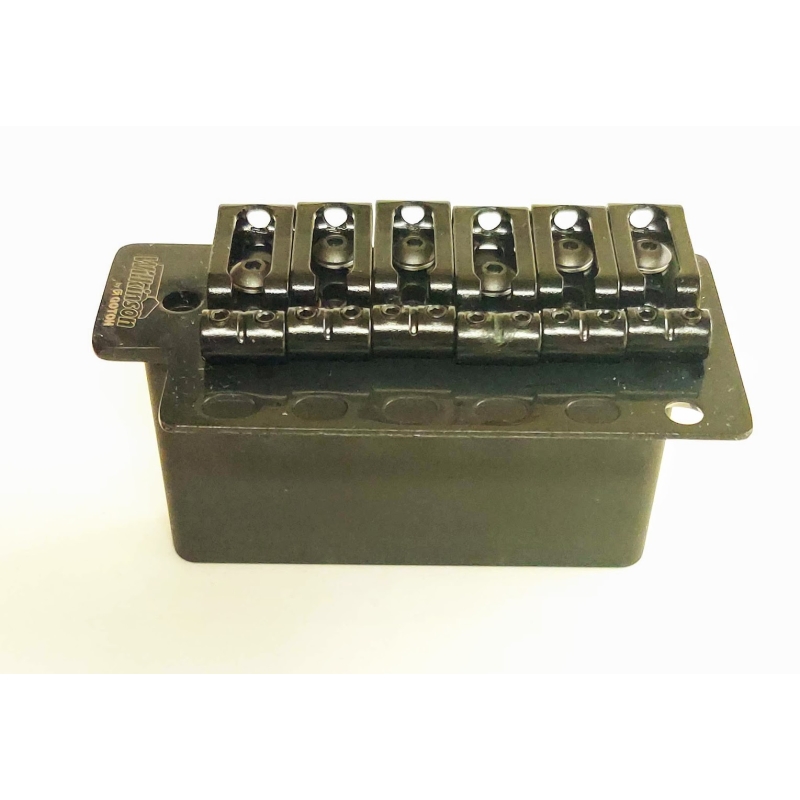 Modelos Premium VSVGN de Puente Wilkinson hecho en Japón por Gotoh en color Negro. De 6 pivotes (6 tornillos ).  La placa base está hecha con acero endurecido. Las monturas corren por la placa con alineación precisa y gran estabilidad.  La distancia entre 2 cuerdas y entre tornillos es de 11.2mm. Ver la gráfica anexa para las medidas del set.