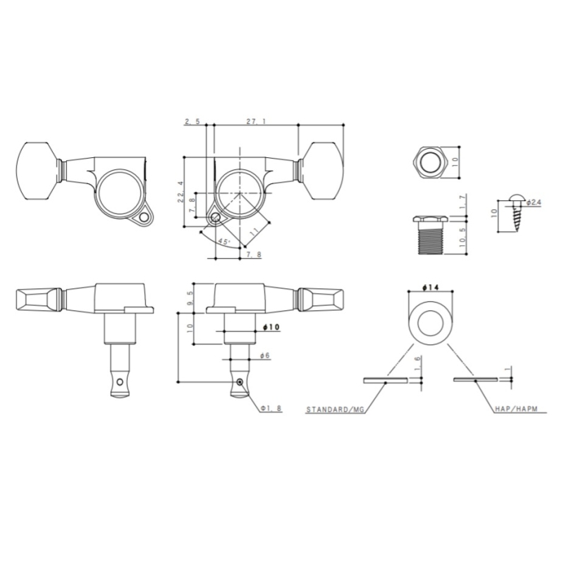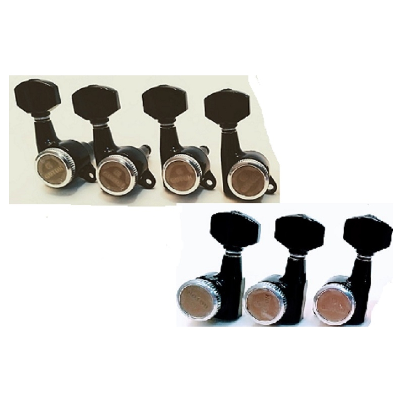 No más desafinadas !!. Producto del fino maquinado y pulido de la casa japonesa Gotoh, está maquinaria se considera entre las mejores disponibles. Cuenta con clavijas grandes estilo schaller muy usadas en guitarras modernas. De clavijas removibles y encasillado de acero forjado y lubricado sellado. Para guitarras con cabezales 4+3. Incluye tornillos para su instalación.