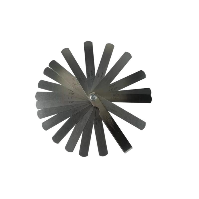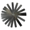 Set de 20 hojas calibradoras de tolerancias para holgura de cuerdas. Pero tambien para una variedad de funciones: medir accioó de cuerdas, medir la correcta profundidad de los slots de las cejillas, Hechas en acero indican tolerancias en medidas metricas e imperiales para facilidad de la lectura. 20 hojas calibradoras desde .0015" (0.04mm) hasta .032" (0.80mm)